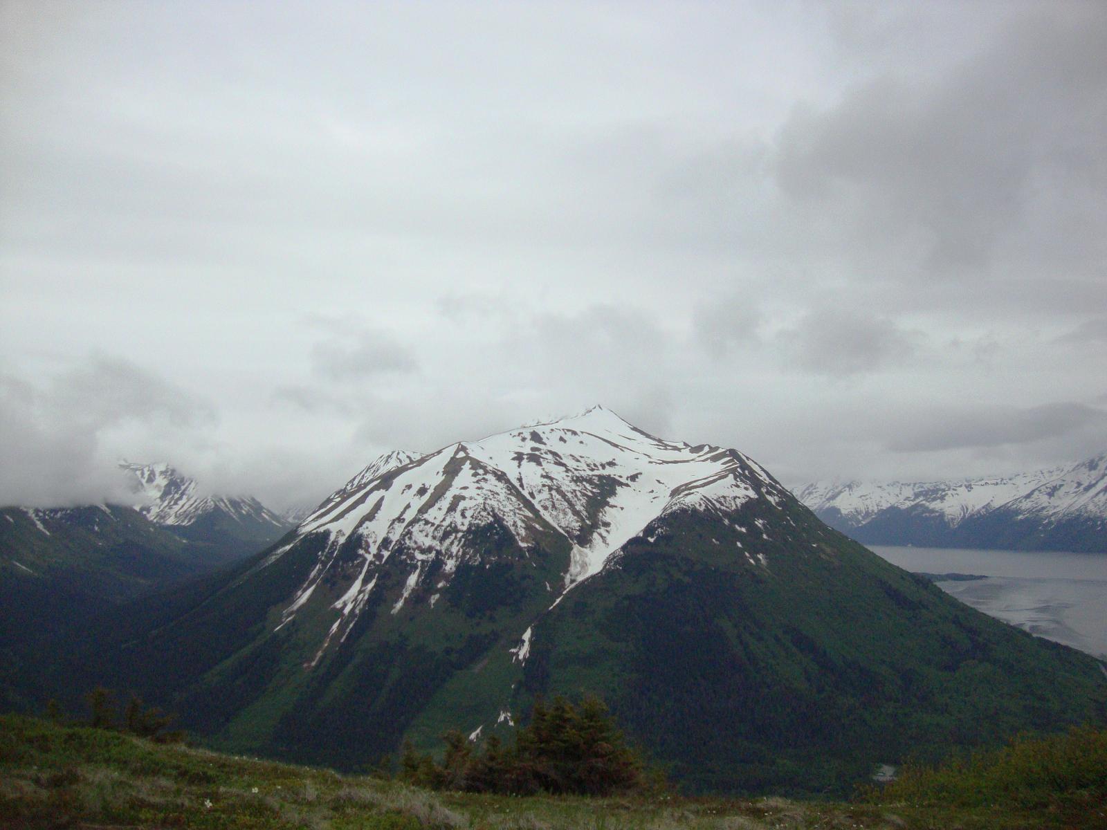 When you go "around the corner" and up Turnagain Arm, you enter a different ecosystem. You enter the milder, moister, coastal rain-forest, leaving behind the colder, drier, boreal forest ecoystem. This is because the Chugach Range is no longer blocking mild, moist airmasses moving in from the south and east, from the Gulf of Alaska and Pacific Ocean. Instead, what is blocked, from the north by the Chugach Range, south and east of Anchorage, are the coldest arctic air-masses. So winters are somewhat warmer here, and snowier, and summers, much cooler and moister. This is reflected in the forests. The smaller white and black spruce of the boreal forest are replaced by the larger, majestic Sitka Spruce, which are a major component of all the Pacific Coastal rain forests from Northern California, all the way north to here. Western Hemlocks also put in their furthest-north appearance here, as well as the Mountain Hemlock, at the higher elevations. Making for a much different view and feel, from the areas further north and inland.